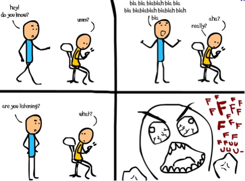 blablaHva skjer I ditt hodet når du opplever å ikke bli lyttet til? Mens du forteller en historie sitter personen som du trodde lyttet til deg og svarer på en mail eller tekstmelding ? Eller personen  snur seg og starter å snakke med noen andre før du er ferdig å snakke?