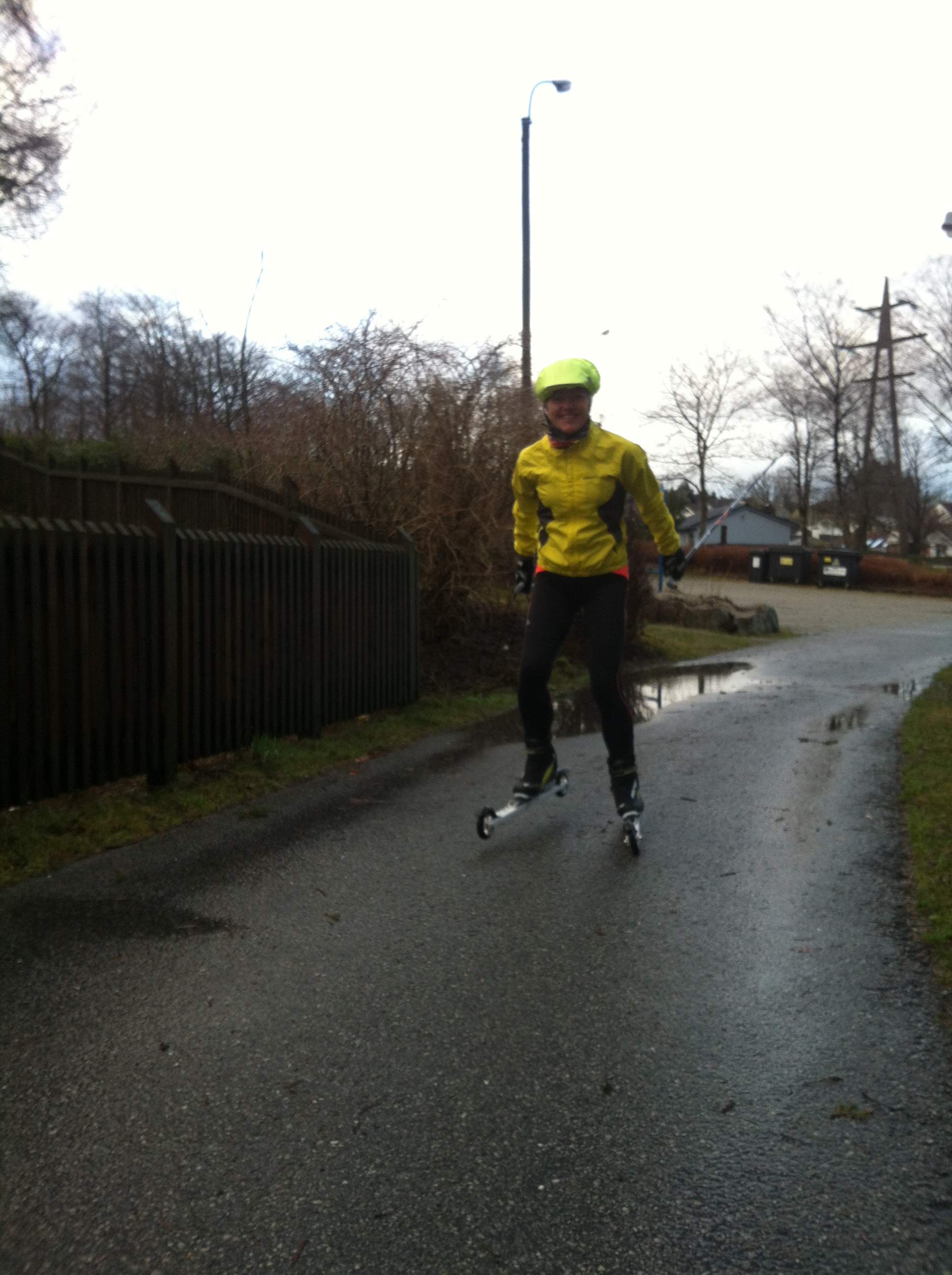 Et lite tips: Husk å holde god glid opp bakkene. Mister du farten er sjansen stor for at du tipper framover. Dette skjedde nemlig meg I dag. Balansen forsvant, skiene tippet framover, knærne gikk I bakken og hjelmen traff asfalten! Ingen skader bortsett fra såret stolthet. Resten av turen passet jeg på å tenke på balansen og teknikken.